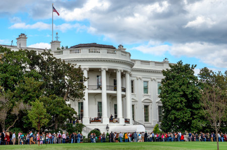 Washington DC, USA - October 20, 2018: Tourists during White House Garden Tour, residence of the United States President, in the city of Washington DC, USA.