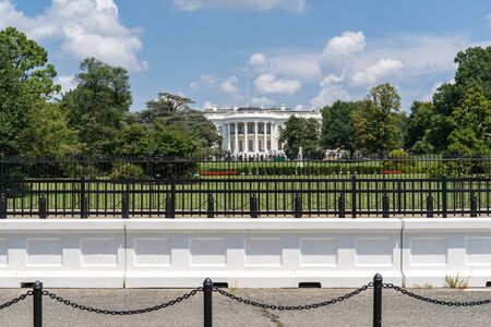 Barriers and fencing in front of the White House in Washington DC, United States of America on a summer day