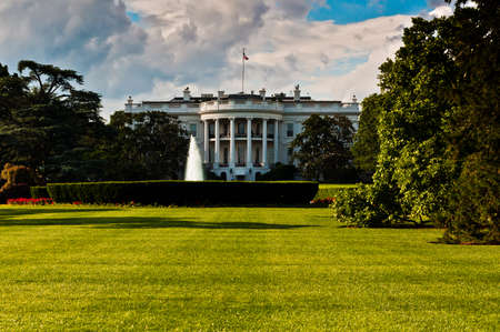 White House in Washington DC. American presidents residence. White House building. Federal government. The White House with green grass.