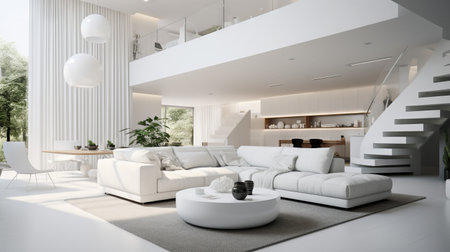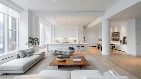 An airy and uncluttered living space with minimalist furnishings and clean lines, creating a serene and harmonious atmosphere for modern living.