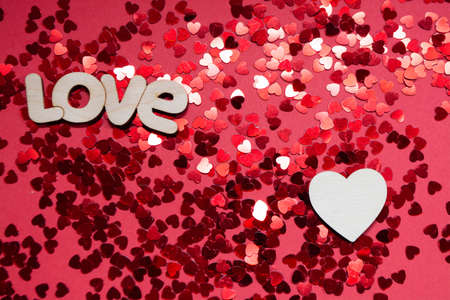 Hearts on a red background. Valentine's Day. selective focus. Valentine.