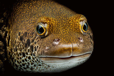 Honeycomb Moray Eel underwater with a black background