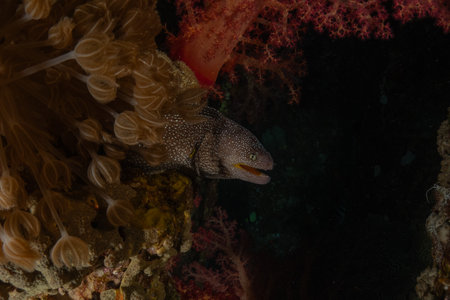 Giant Moray on a coral reef in the Red Sea.
