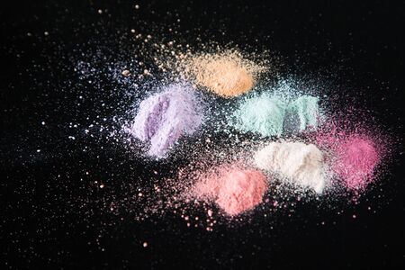 Dust of multi colors as sample of cosmetics product isolated on white background with copy space.