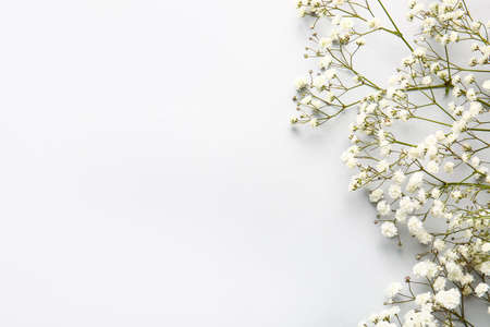Trendy background with sunlight and white gipsophila flower. Selective focus. High quality photo