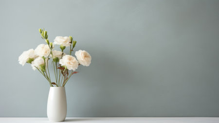 a modern and minimalistic carnation bouquet in a vase, styled in minimalism with clean lines and a simple color palette. the painting captures the essence of modern portraiture, with a focus on the subject's details and a neutral color tone. the lighting is soft and subtle, enhancing the subject's features. ai generated
