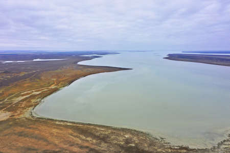 Lake Kamyslybas or Kamyshlybash, large saltwater lake in the Kyzylorda Region, Kazakhstan. waves on the surface of the lake