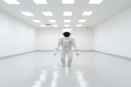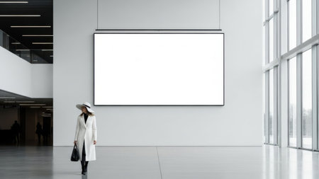 A person is setting up an art exhibit in a large, well-lit gallery space. The minimalist design enhances the artistic atmosphere, encouraging creativity.