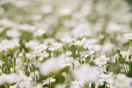 Cerastium tomentosum (snow-in-summer), herbaceous flowering plant, selective focus