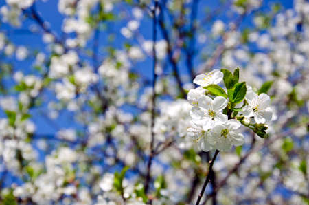 White blossoming cherry flowers closeup. Spring background