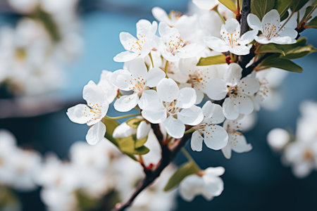 Slecetive focus of white blossom over the blue sky