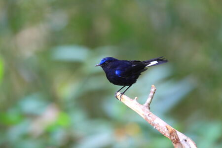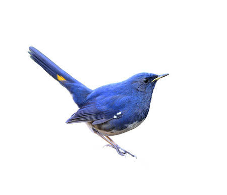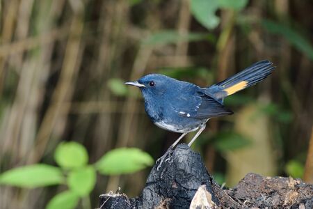 Beautiful Blue bird, white-bellied Redstart (Hodgsonius phoenicuroides) with tail up actions