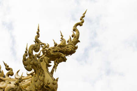 sculpture of golden snake in a white temple of Chiang Rai, in Thailand