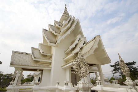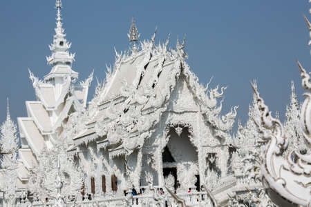Beautiful buddhist Wat Rong Khun white temple in Chiang Rai in northern Thailand. Cityscape with beautiful religion architecture in south east Asia.