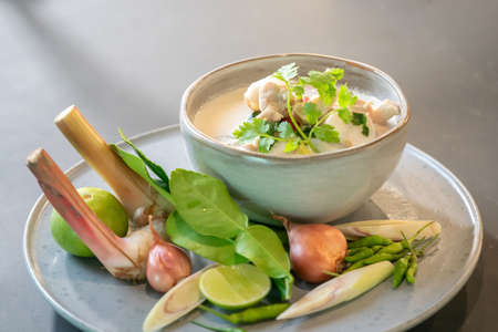 Coconut milk with chicken soup, Delicious Thai Menu are shot in studio light.