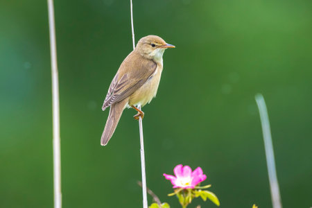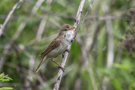 Great reed warbler (Acrocephalus arundinaceus) in the nature habitat.