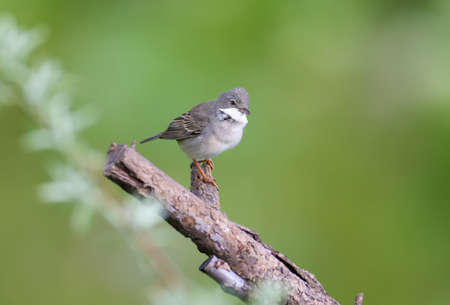 A Common whitethroat bird or Sylvia communis on a branch of a tree