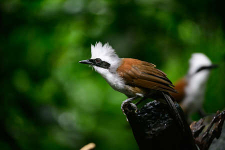 beautiful white-crested laughingthrush Garrulax leucolophus possing on tree