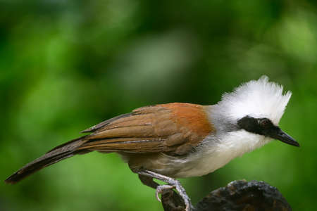 The White-crested Laughing Thrush is a bird species known for its distinct white crest and cheerful vocalizations. It is found in various regions of Asia and is recognized for its social behavior and playful nature