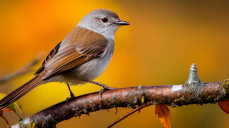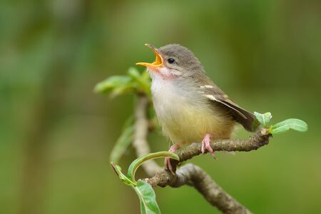 Generative AI : Cute bird Plain Prinia Prinia inornata rest on branch in nature