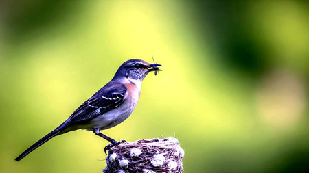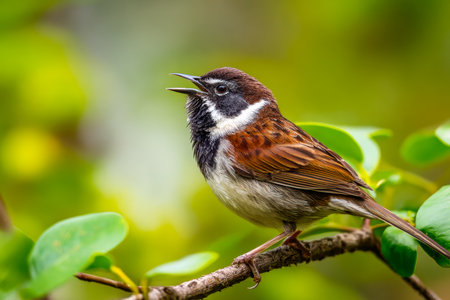 Small bird perching on branch, singing sweetly generated by artificial intelligence