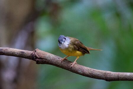 Yellow-bellied Bulbul (Alophoixus phaeocephalus) standing on a branch in nature with blurred green background