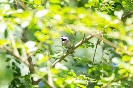 Carolina chickadee (Poecile carolinensis) looking around from its perch in a bush