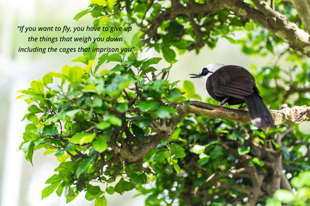 inspirational quote about - If you want to fly, you have to give up the things that weigh you down, including the cages that imprison you. With a small bird perched peacefully on a branch