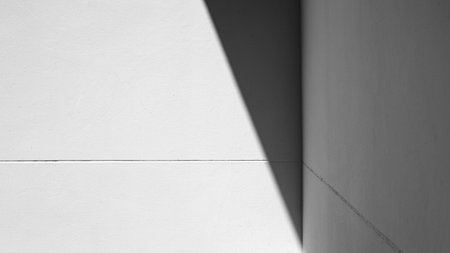 Minimalist white wall with geometric shadow and light contrast, abstract architecture background showing clean lines and simplicity in modern design concept.