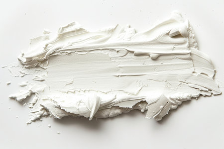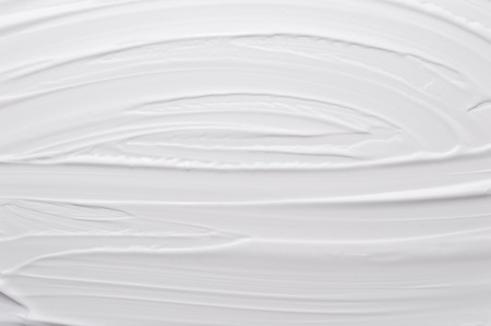 Strokes of white acrylic paint painted by hand on a white canvas. Chaotic and expressive brush strokes on a white background. The smear is very textured. An element for the design. Face cream