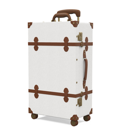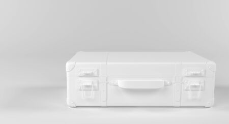 White monochrome travel suitcase on white background. Detailed 3d illustration