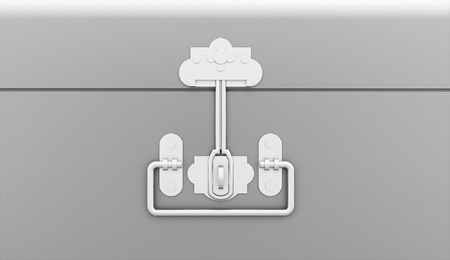 Gray leather suitcase with exquisite clasps. Classic premium design with centuries-old traditions. Modern new product in vintage style. 3d illustration