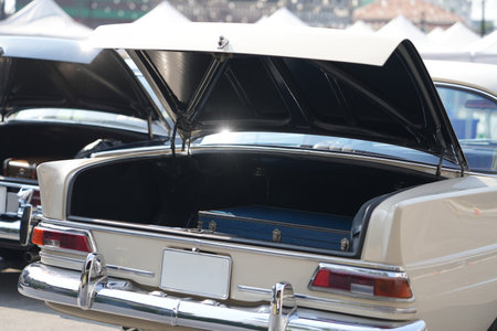 A classic car trunk with polished chrome and vintage design, show the automotive craftsmanship and retro elegance.
