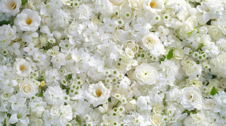 A stunning display of white flowers complemented by delicate greenery, set against a soft background. This image captures the essence of freshness and tranquility in nature.
