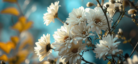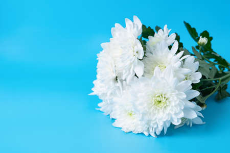 White chrysanthemum bouquet on blue background