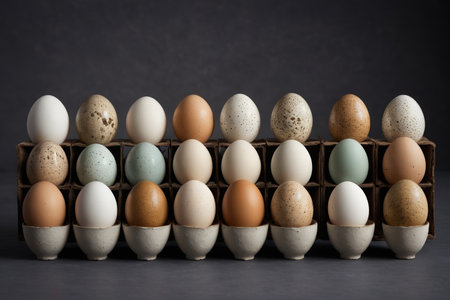 Multicolor eggs neatly arranged for display