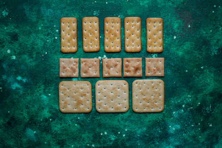 Sweet Crunchy Crackers isolated on abstract background. Flay Lay. Copy Space.