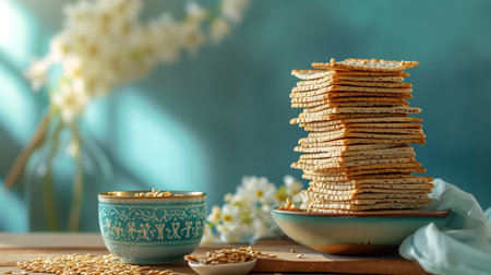 Happy Passover, celebration tradition banner copy space poster background, Jewish holiday commemorating the Exodus from Egypt, matzo wine food, judaizm bread religious