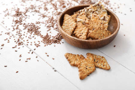 grain biscuits sprinkled with sesame seeds on a wooden background