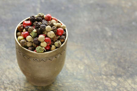 Peppercorns close-up, pepper mix, food background.