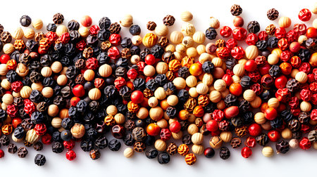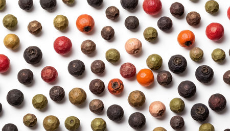 Colorful peppercorns on a white background. Top view.