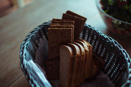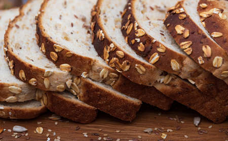 rich and natural sliced ​​and toasted bread with grains of different elements,