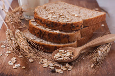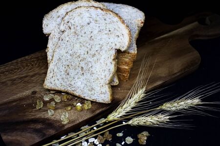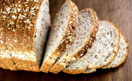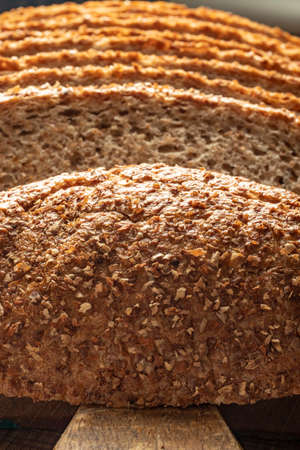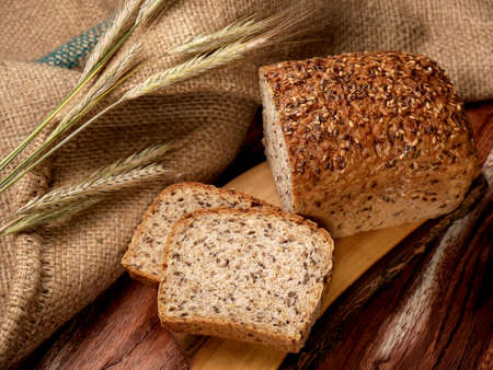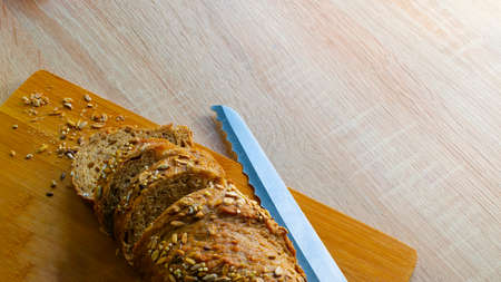 Sliced whole wheat bread on wooden cutting board,healthy food concept