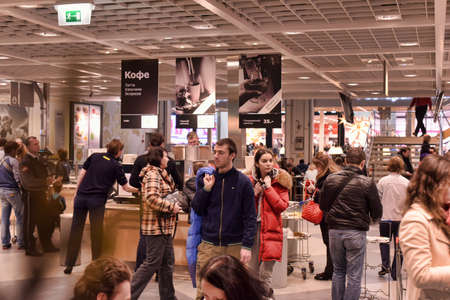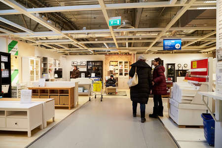 Moscow, Russia - March 25, 2018: Interior Of Large Ikea Storehouse With Wide Range Of Products In Moscow. IKEA Is World's Largest Furniture Retailer.