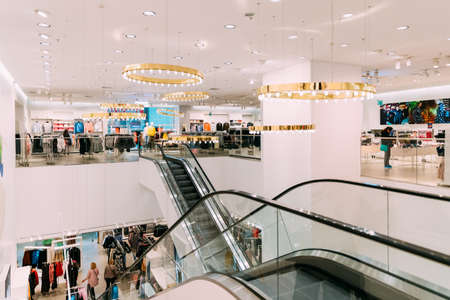 Vilnius, Lithuania - September 21, 2017: People Resting And Walking At Modern Shopping Mall Centre.