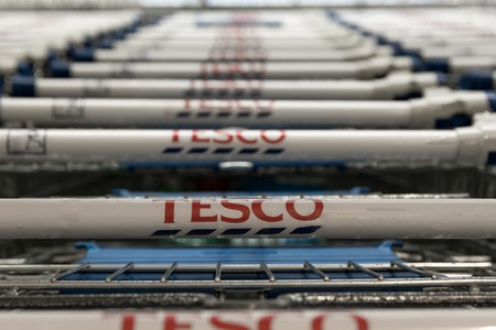 23 of October, 2017, Editorial photo of Tesco shopping troley, shopping park, Brno, Czech Republic