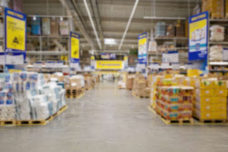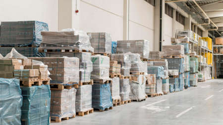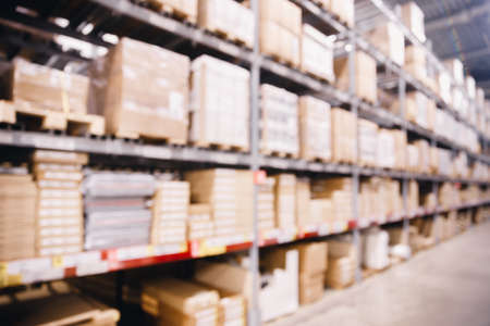 Blurred background photo interior warehouse with carton box retail stock or postal center