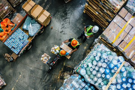An engaging photograph of staff collaborating to arrange supplies for transport, capturing the teamwork involved in the wholesaling process. --ar 3:2 --v 6 Job ID: 38c01ca1-7e3c-4b33-91c0-1954a83a15b5