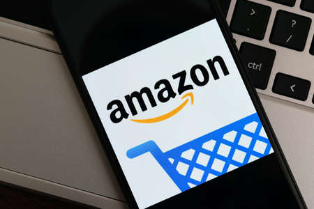 Krakow, Poland - September 30, 2020: Amazon application sign on the screen smartphone. Amazon is the most famous online retailer in the world