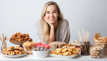 Salty snacks. Pretzels, chips, crackers and candy sweets. Unhealthy products. food bad for figure, skin, heart and teeth. Assortment of fast carbohydrates food.